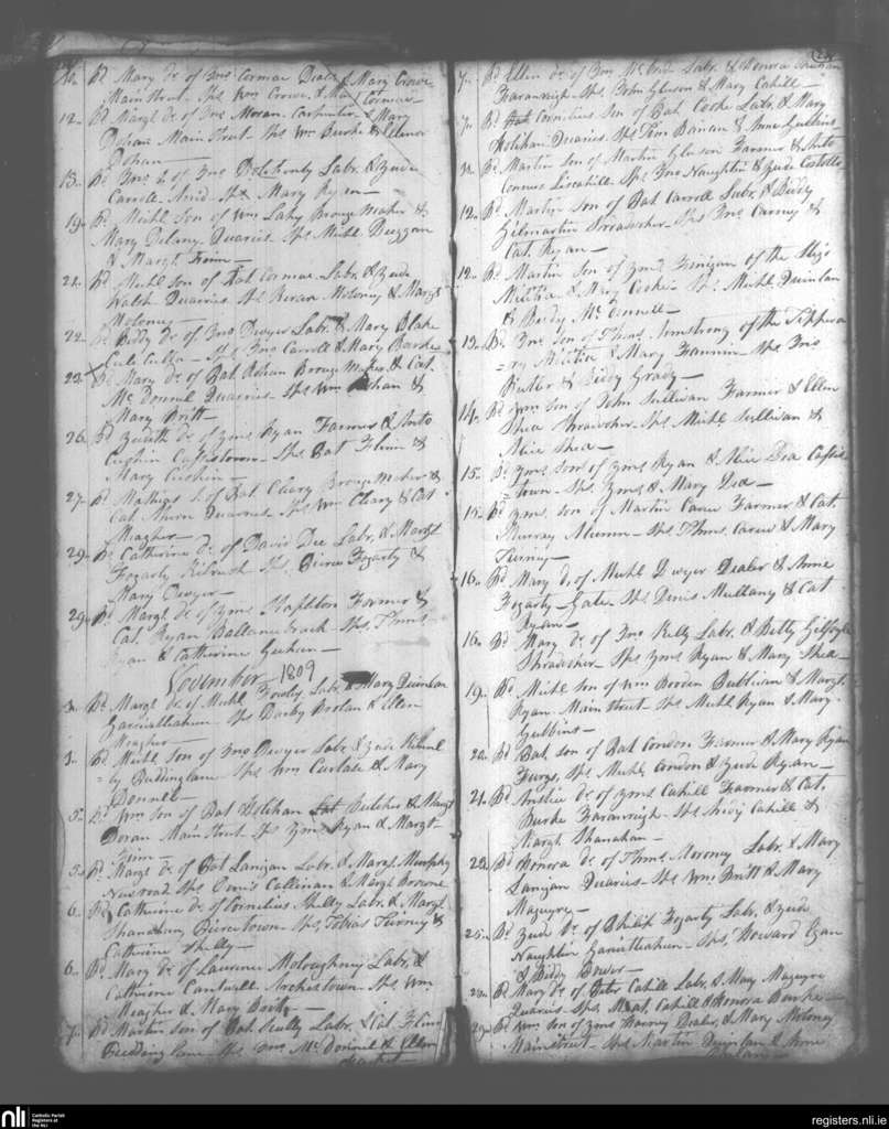 Thurles; County of Tipperary; Diocese of Cashel and Emly. Baptisms, Oct. 1809 to Nov. 1809