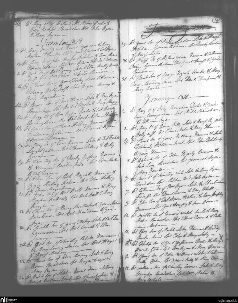 Thurles; County of Tipperary; Diocese of Cashel and Emly. Baptisms, Nov. 1809 to Jan. 1810