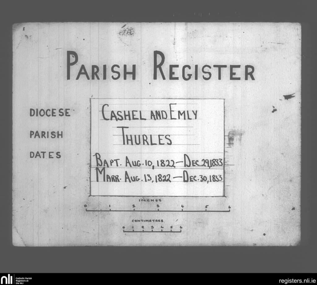 Thurles; County of Tipperary; Diocese of Cashel and Emly. Baptisms, Marriages