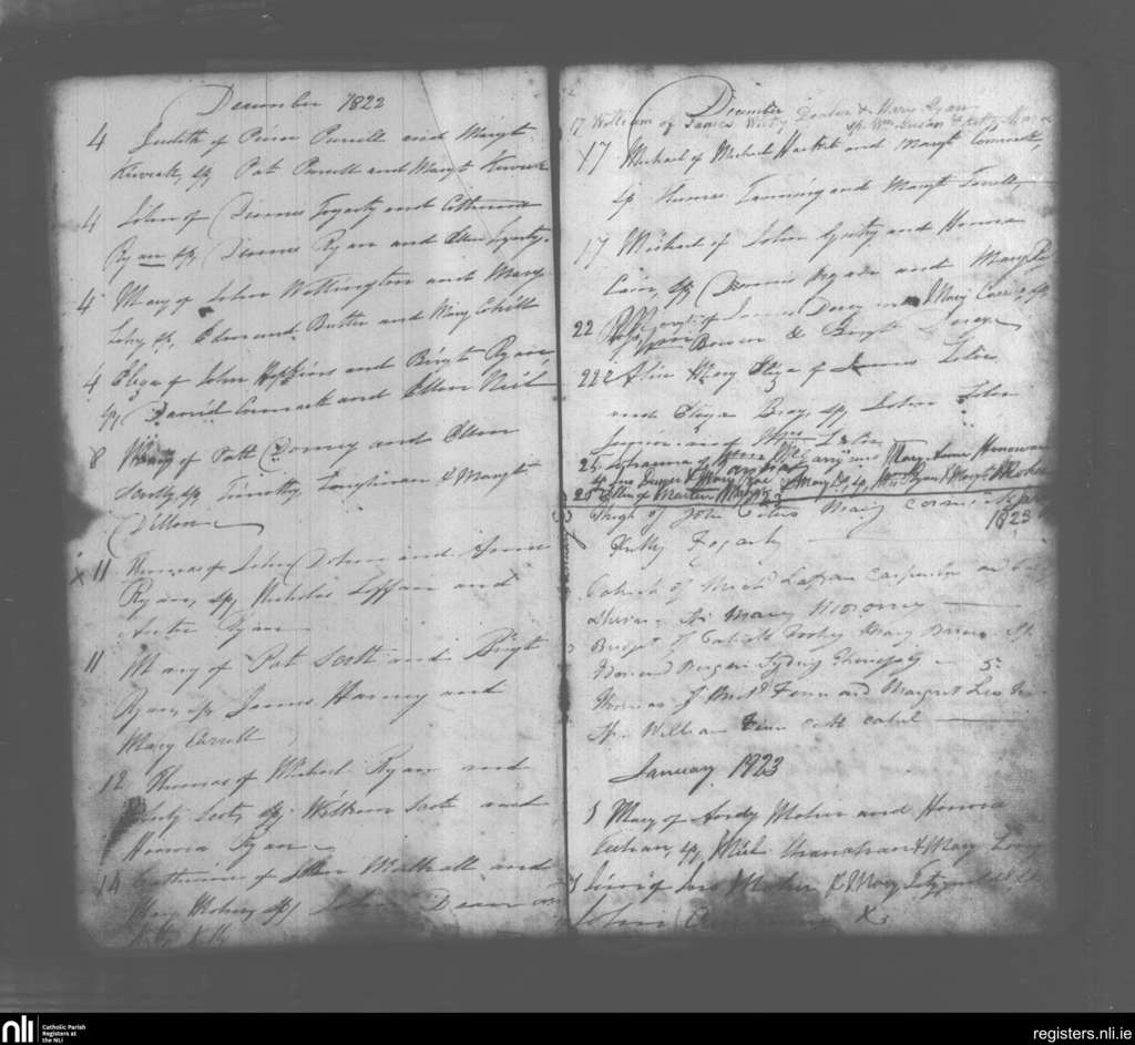Thurles; County of Tipperary; Diocese of Cashel and Emly. Baptisms, Dec. 1822 to Jan. 1823