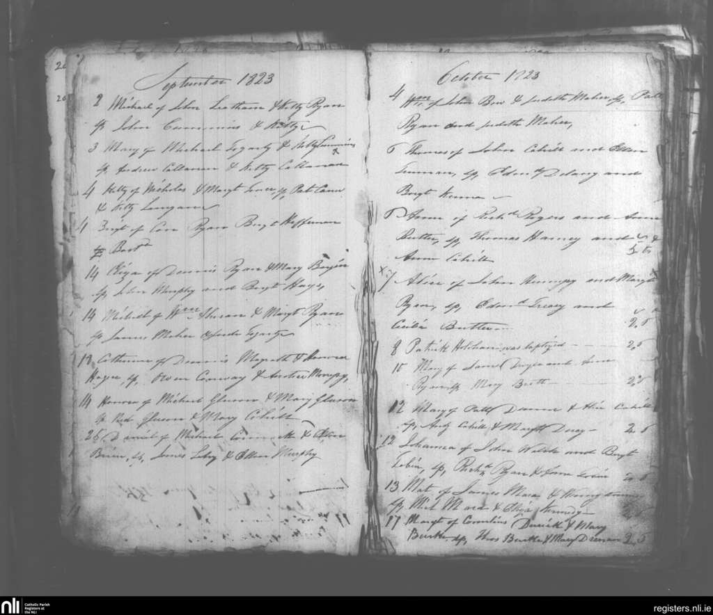 Thurles; County of Tipperary; Diocese of Cashel and Emly. Baptisms, Sep. 1823 to Oct. 1823