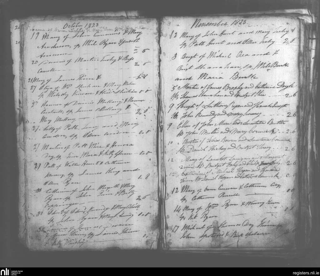 Thurles; County of Tipperary; Diocese of Cashel and Emly. Baptisms, Oct. 1823 to Nov. 1823