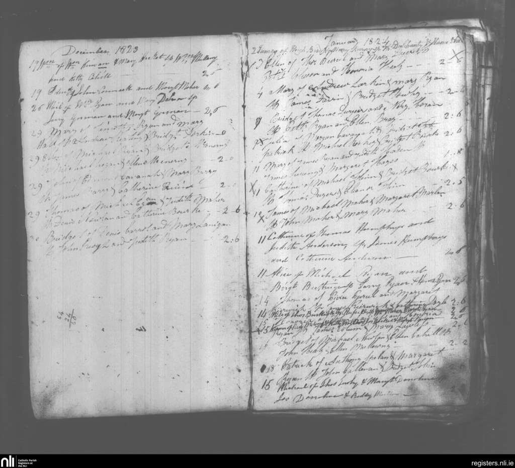 Thurles; County of Tipperary; Diocese of Cashel and Emly. Baptisms, Dec. 1823 to Jan. 1824