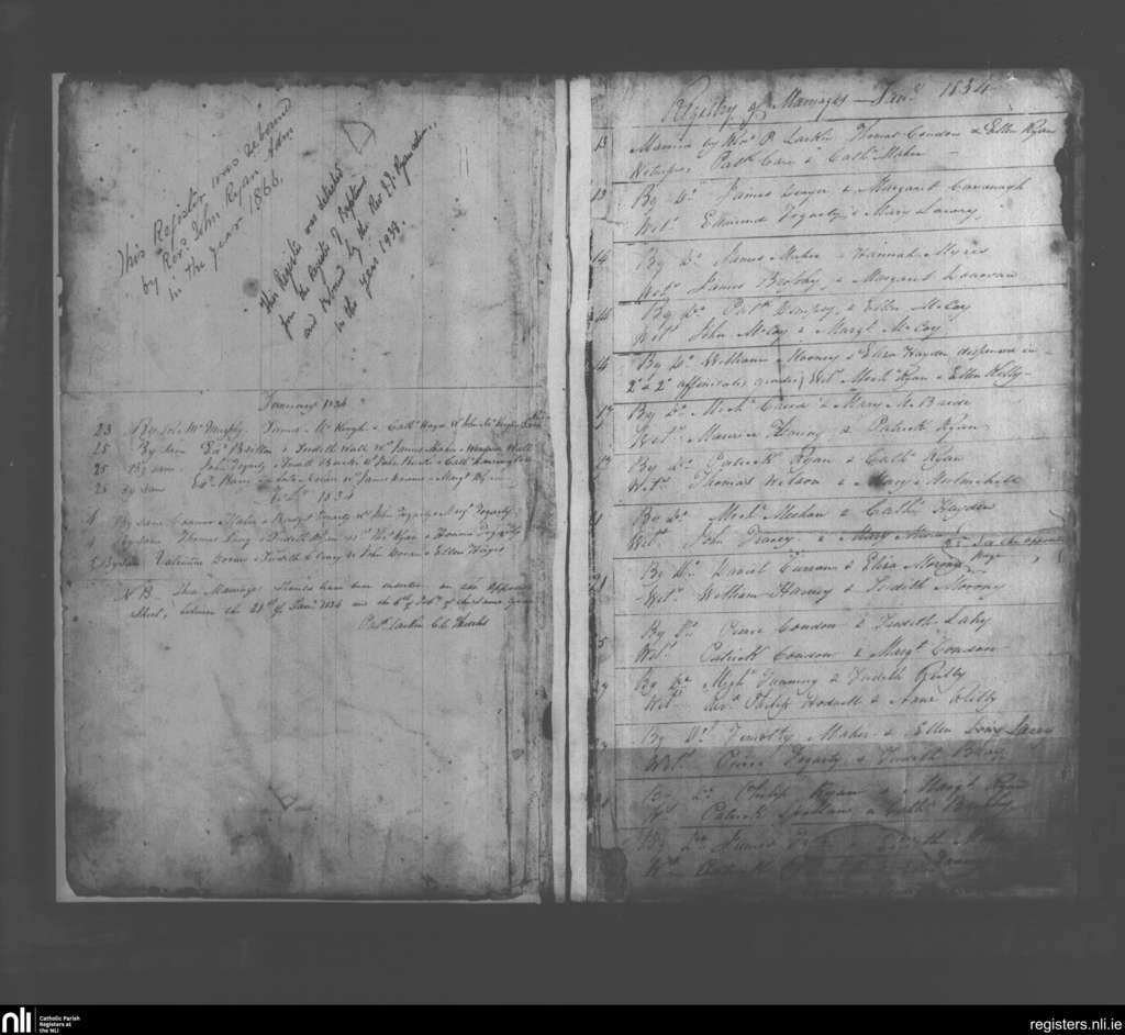 Thurles; County of Tipperary; Diocese of Cashel and Emly. Marriages, Jan. 1834 to Feb. 1834