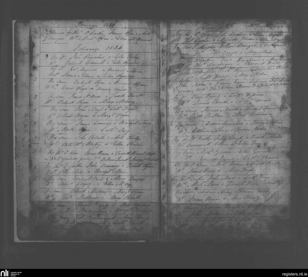 Thurles; County of Tipperary; Diocese of Cashel and Emly. Marriages, Jan. 1834 to Feb. 1834