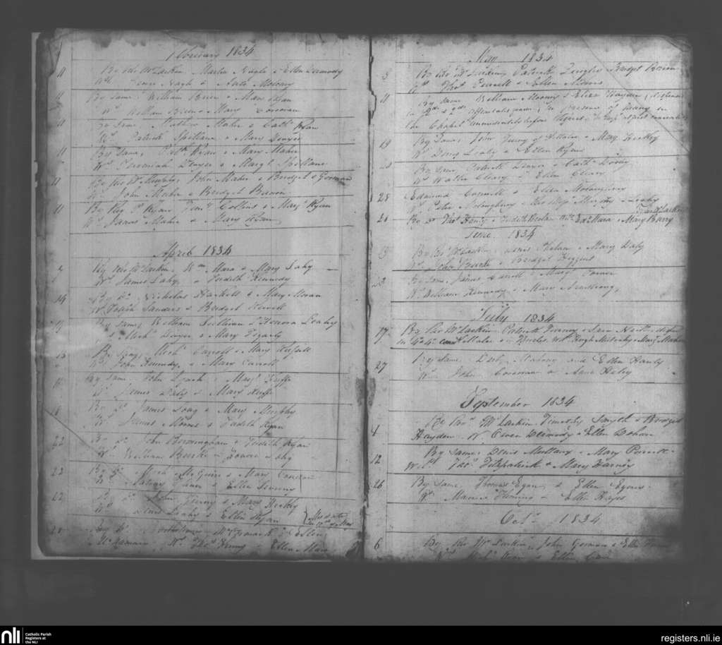 Thurles; County of Tipperary; Diocese of Cashel and Emly. Marriages, Feb. 1834 to Oct. 1834