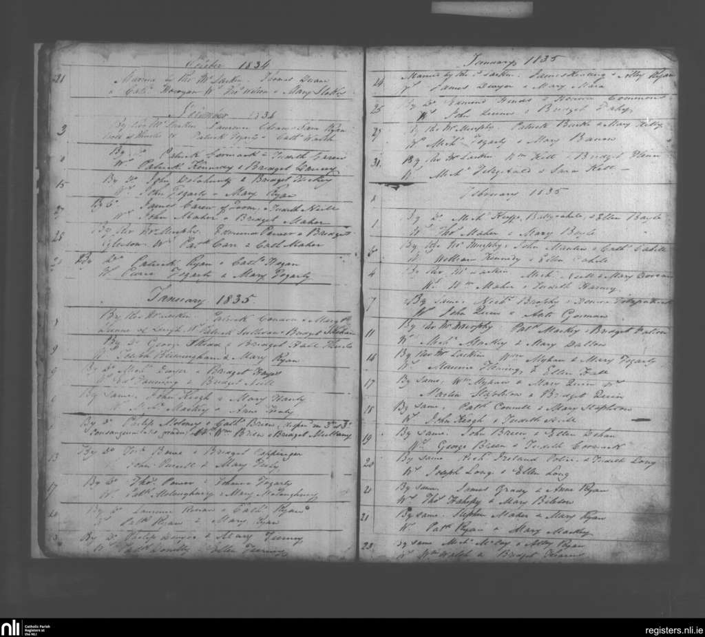 Thurles; County of Tipperary; Diocese of Cashel and Emly. Marriages, Oct. 1834 to Feb. 1835