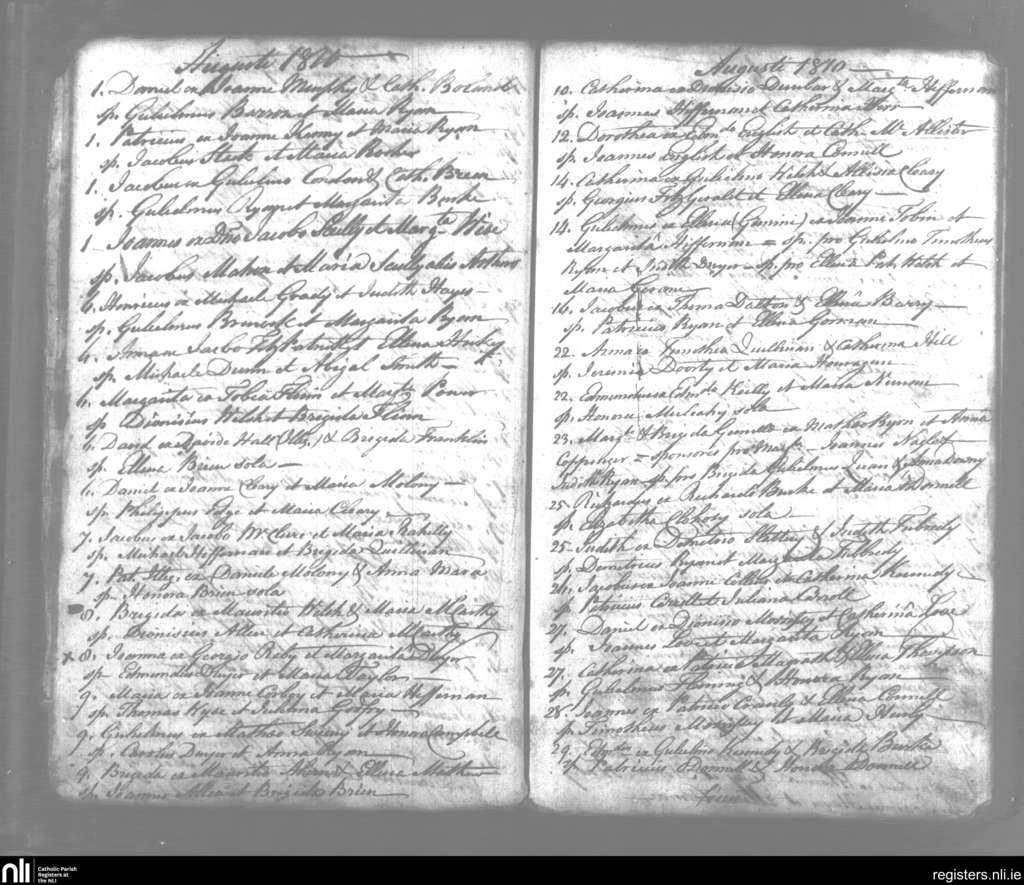 Tipperary; County of Tipperary; Diocese of Cashel and Emly. Baptisms, Aug. 1810