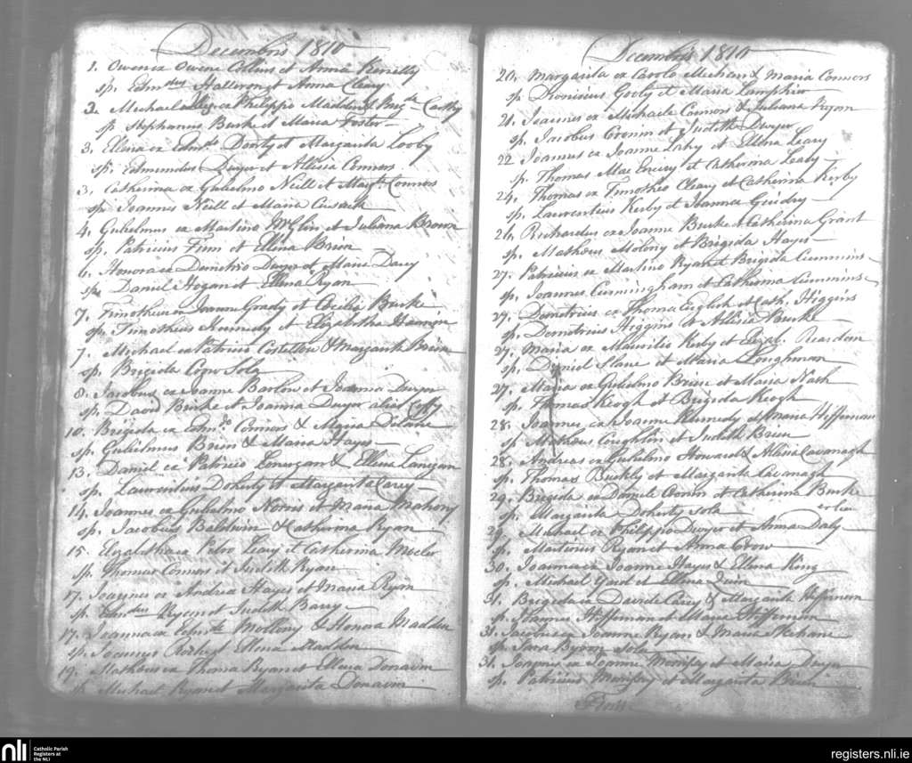 Tipperary; County of Tipperary; Diocese of Cashel and Emly. Baptisms, Dec. 1810