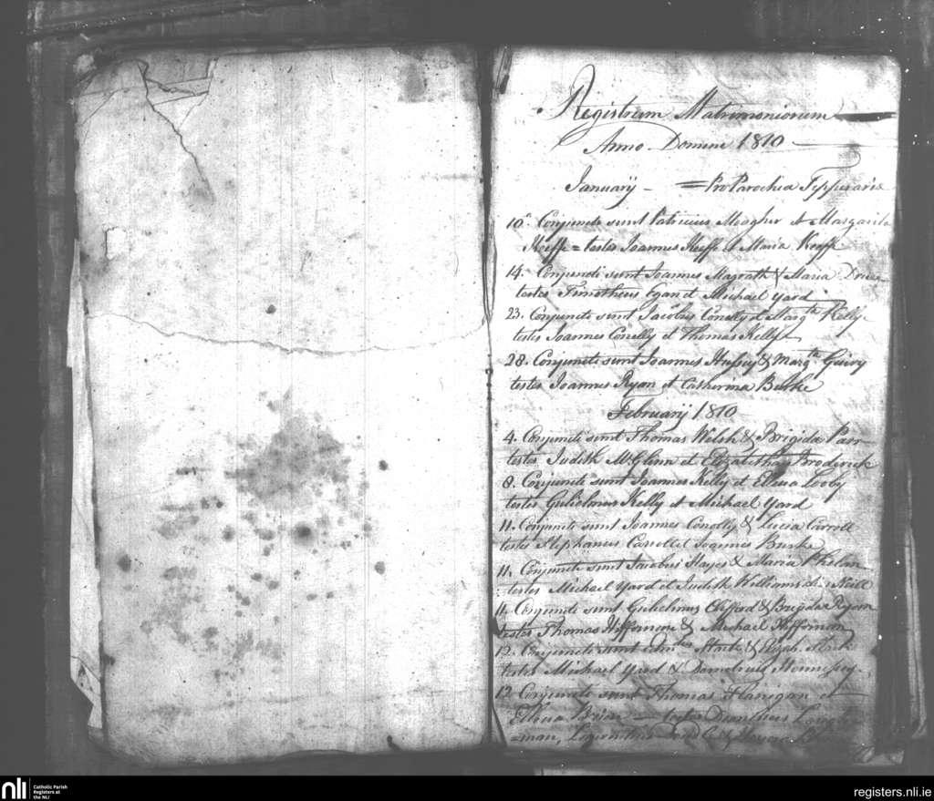 Tipperary; County of Tipperary; Diocese of Cashel and Emly. Marriages, Jan. 1810 to Feb. 1810