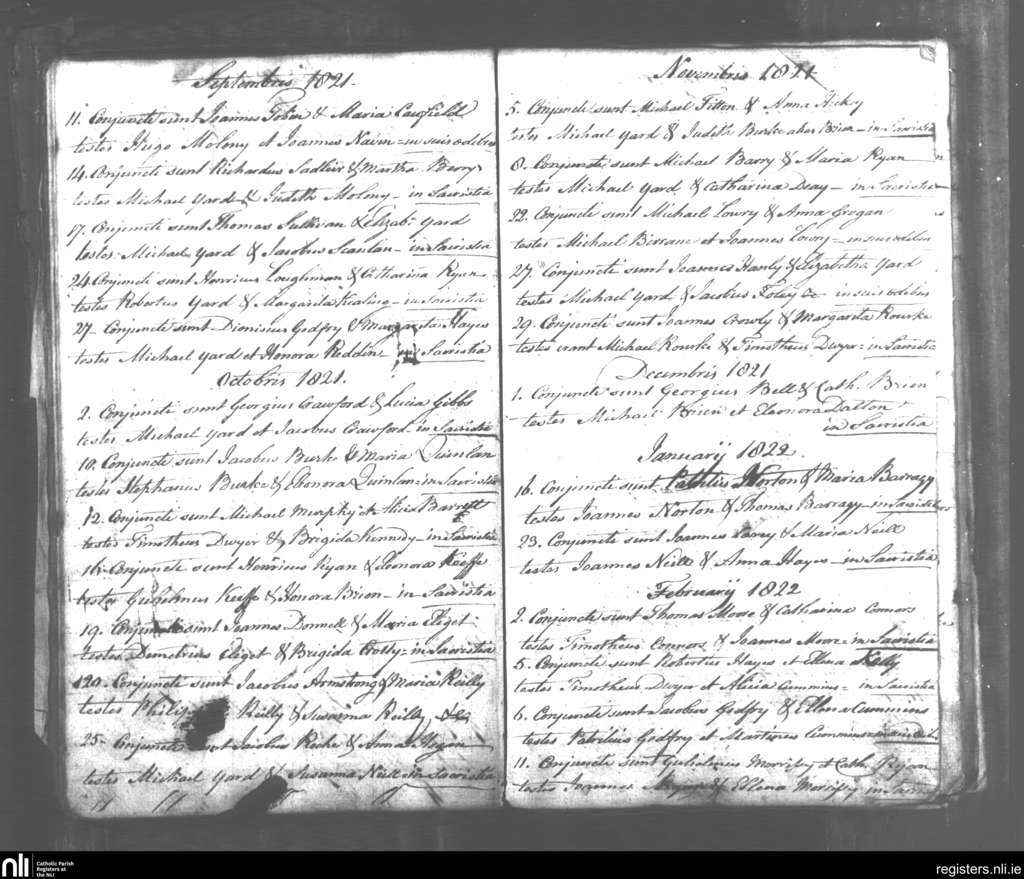 Tipperary; County of Tipperary; Diocese of Cashel and Emly. Marriages, Sep. 1821 to Feb. 1822