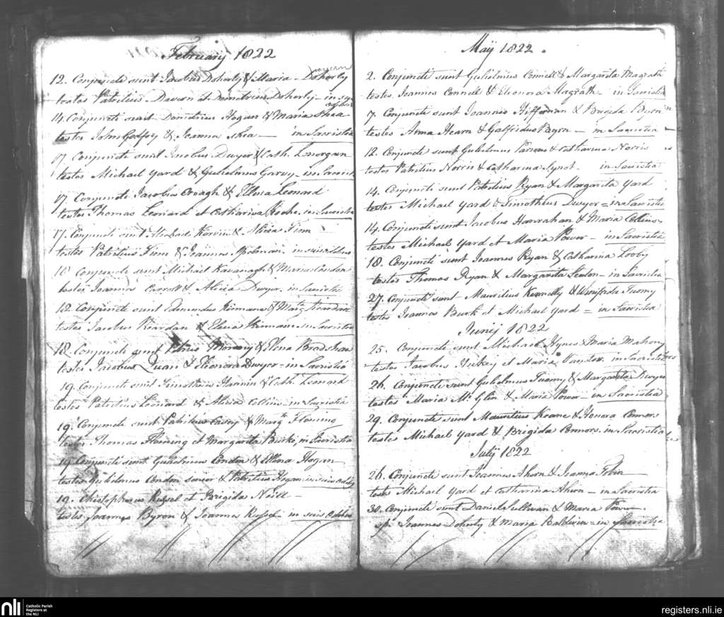 Tipperary; County of Tipperary; Diocese of Cashel and Emly. Marriages, Feb. 1822 to July 1822
