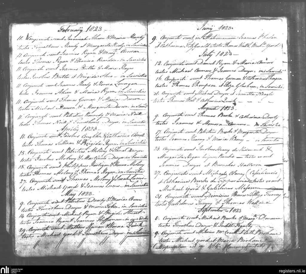 Tipperary; County of Tipperary; Diocese of Cashel and Emly. Marriages, Feb. 1823 to Sep. 1823