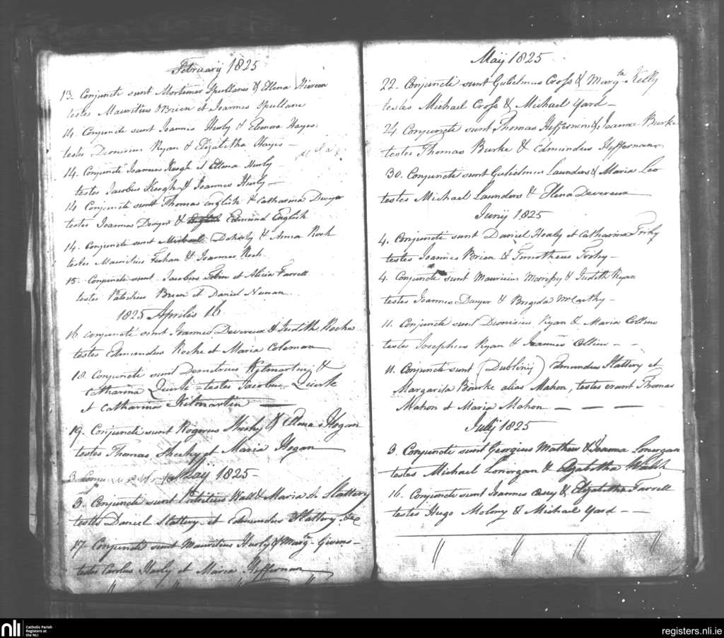 Tipperary; County of Tipperary; Diocese of Cashel and Emly. Marriages, Feb. 1825 to July 1825