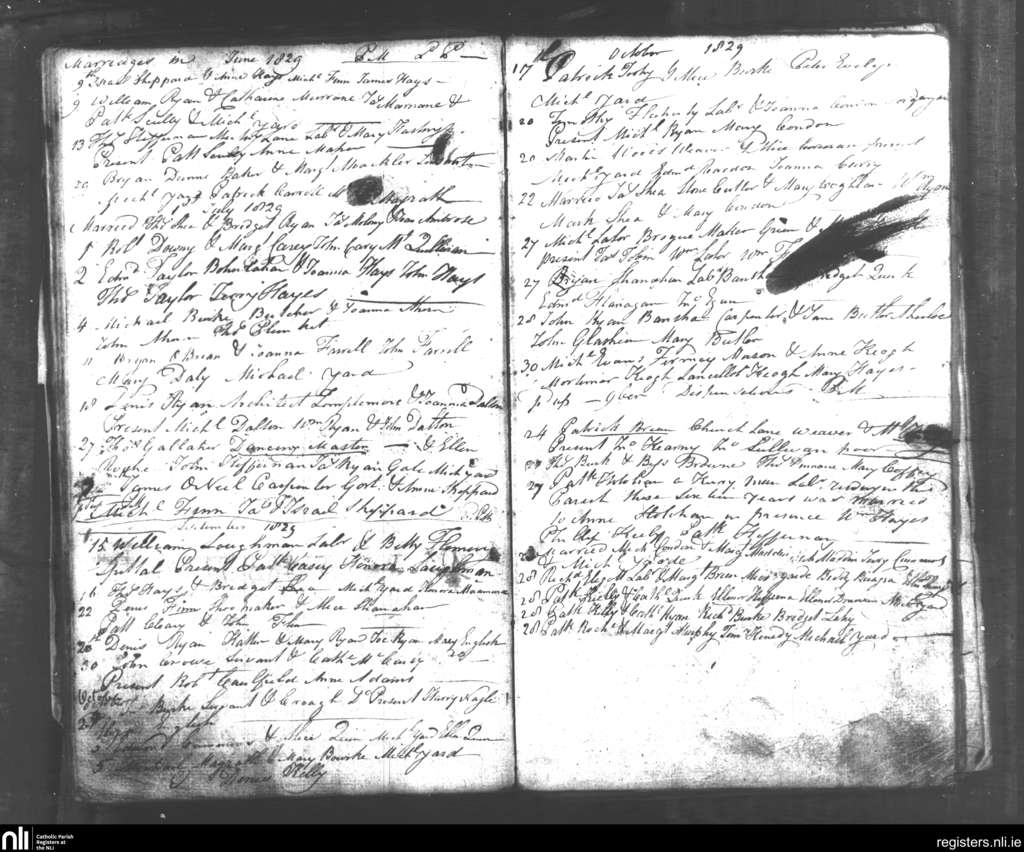 Tipperary; County of Tipperary; Diocese of Cashel and Emly. Marriages, June 1829 to Nov. 1829