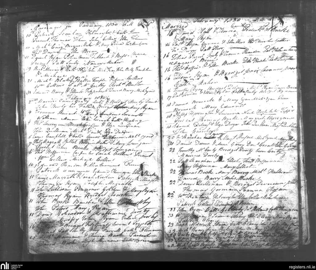 Tipperary; County of Tipperary; Diocese of Cashel and Emly. Marriages, Jan. 1830 to Feb. 1830