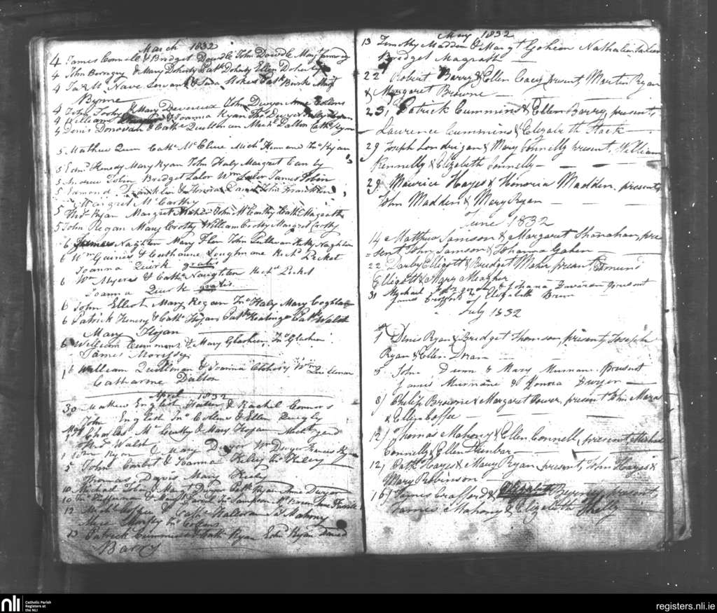 Tipperary; County of Tipperary; Diocese of Cashel and Emly. Marriages, Mar. 1832 to July 1832