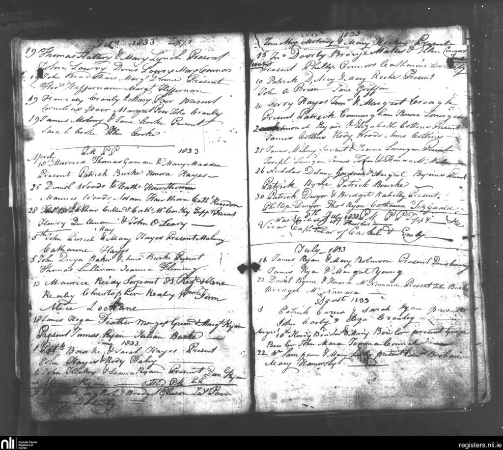 Tipperary; County of Tipperary; Diocese of Cashel and Emly. Marriages, Feb. 1833 to Nov. 1833