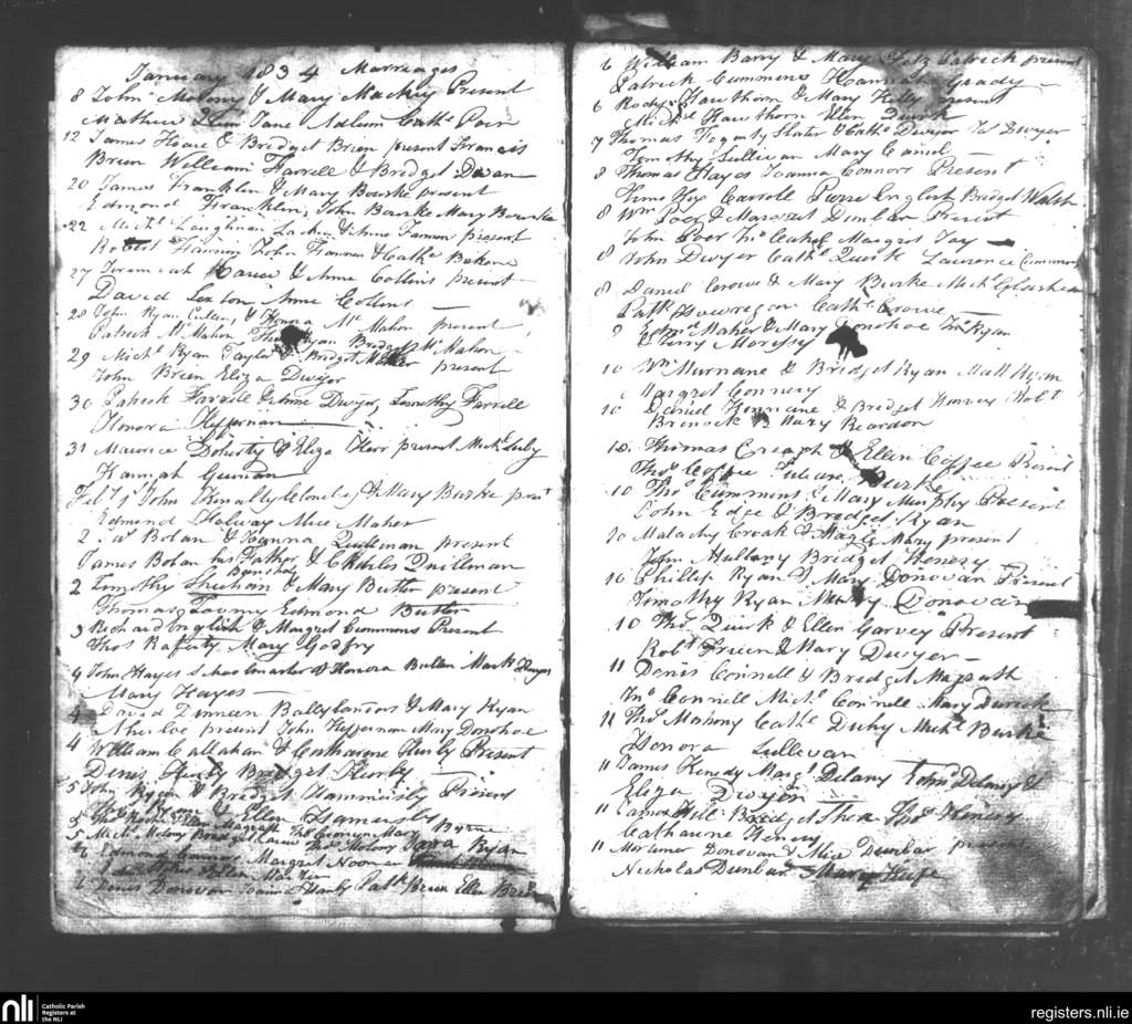 Tipperary; County of Tipperary; Diocese of Cashel and Emly. Marriages, Jan. 1834 to Feb. 1834