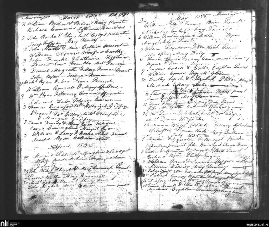 Tipperary; County of Tipperary; Diocese of Cashel and Emly. Marriages, Mar. 1835 to July 1835