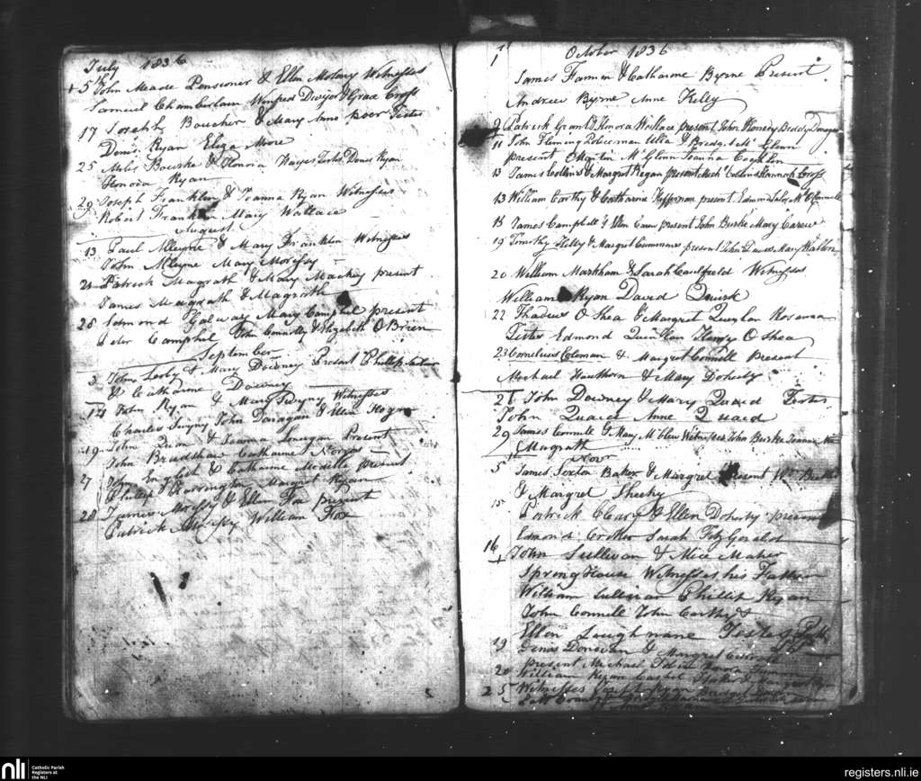 Tipperary; County of Tipperary; Diocese of Cashel and Emly. Marriages, July 1836 to Nov. 1836