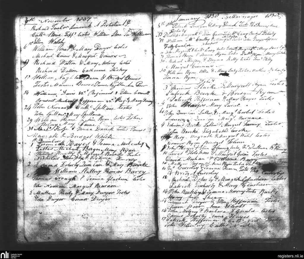 Tipperary; County of Tipperary; Diocese of Cashel and Emly. Marriages, Nov. 1837 to Feb. 1838