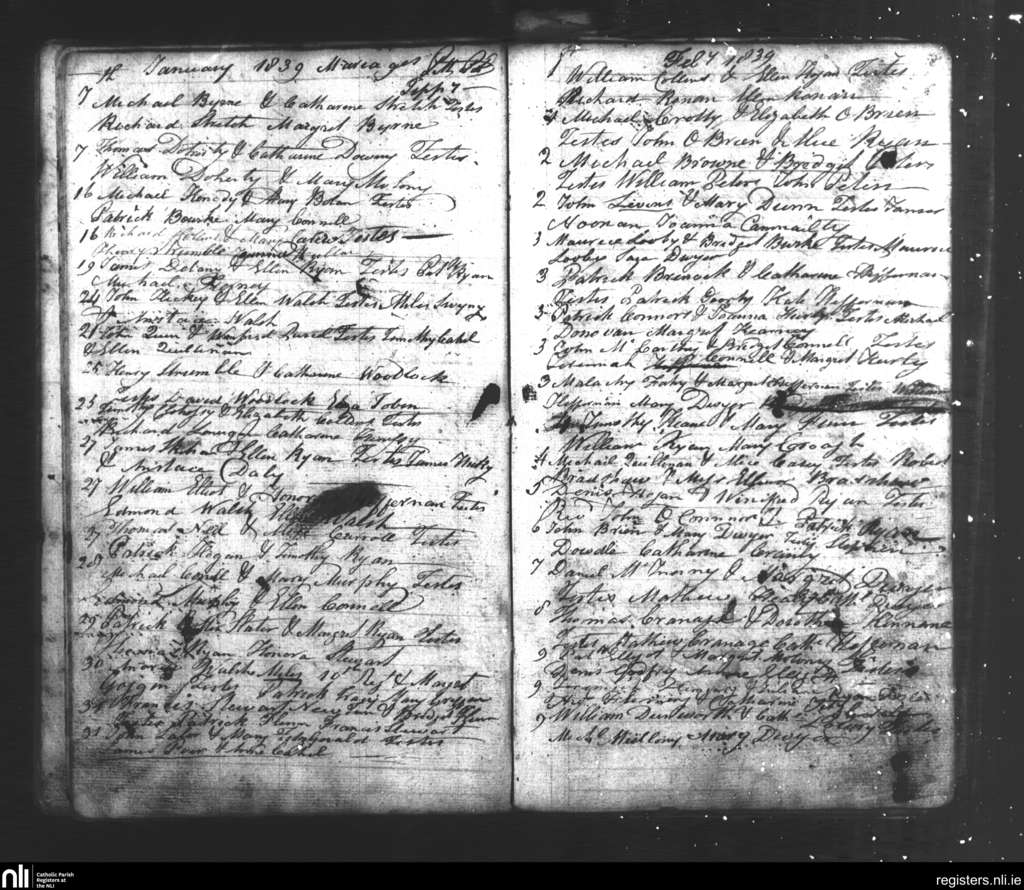 Tipperary; County of Tipperary; Diocese of Cashel and Emly. Marriages, Jan. 1839 to Feb. 1839