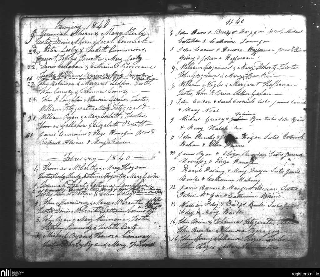 Tipperary; County of Tipperary; Diocese of Cashel and Emly. Marriages, Jan. 1840 to Feb. 1840