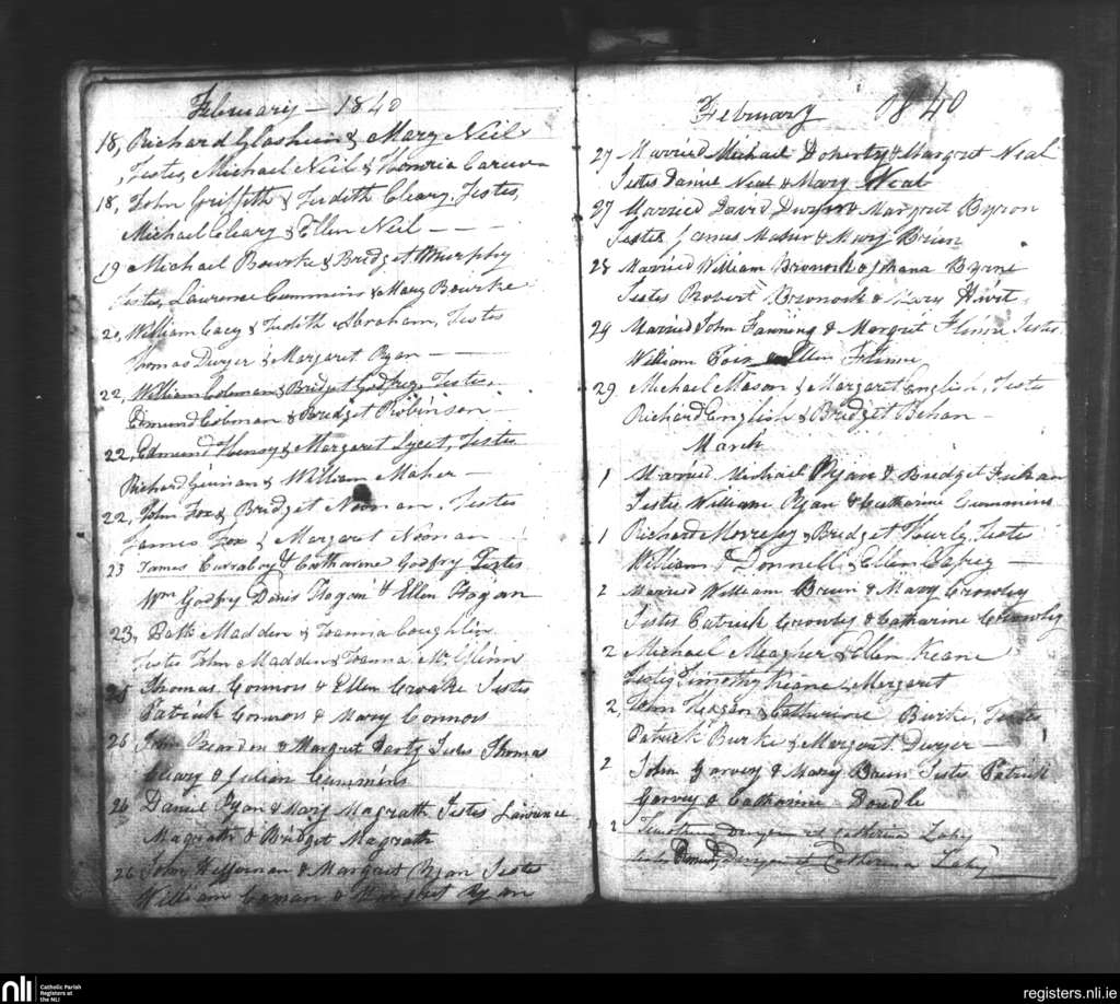 Tipperary; County of Tipperary; Diocese of Cashel and Emly. Marriages, Feb. 1840 to Mar. 1840