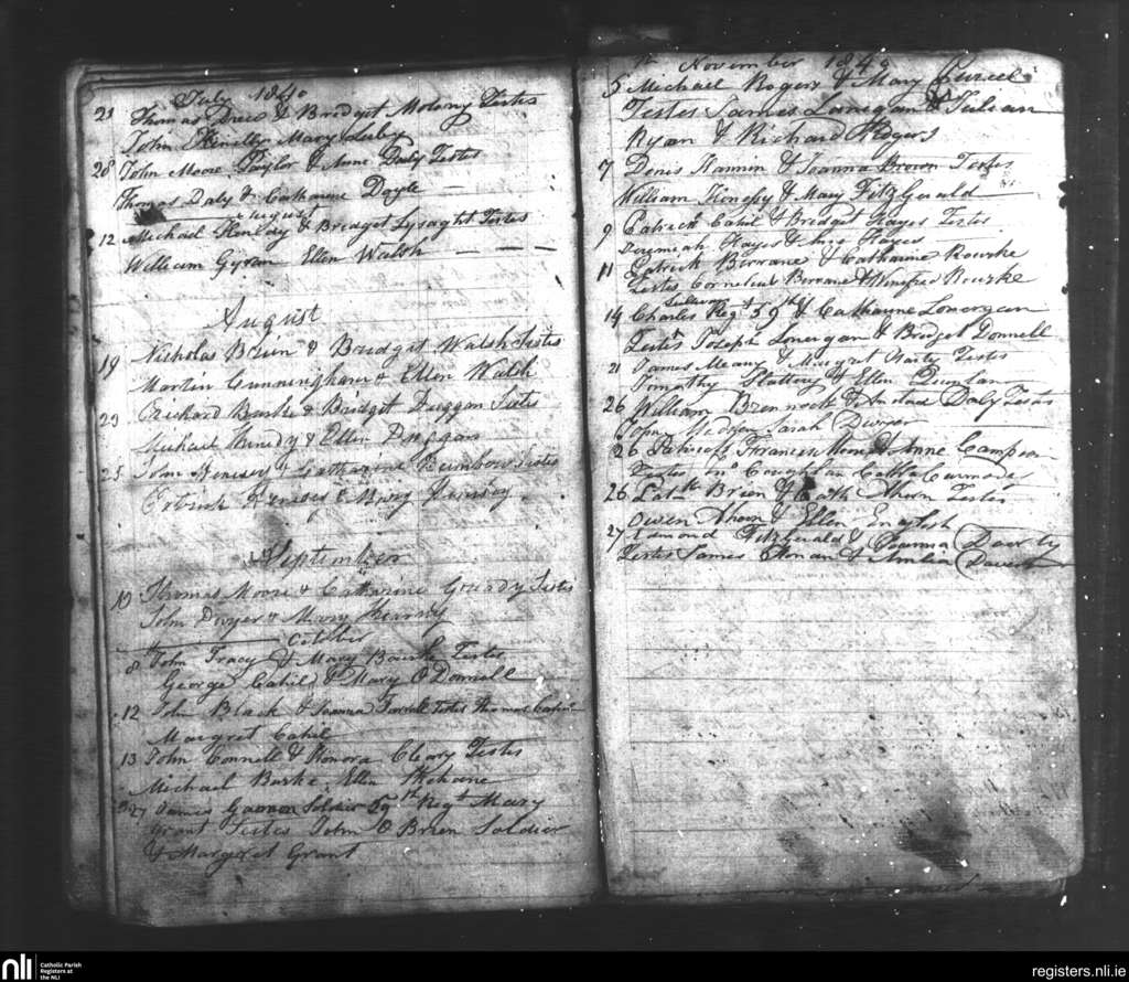 Tipperary; County of Tipperary; Diocese of Cashel and Emly. Marriages, July 1840 to Nov. 1840