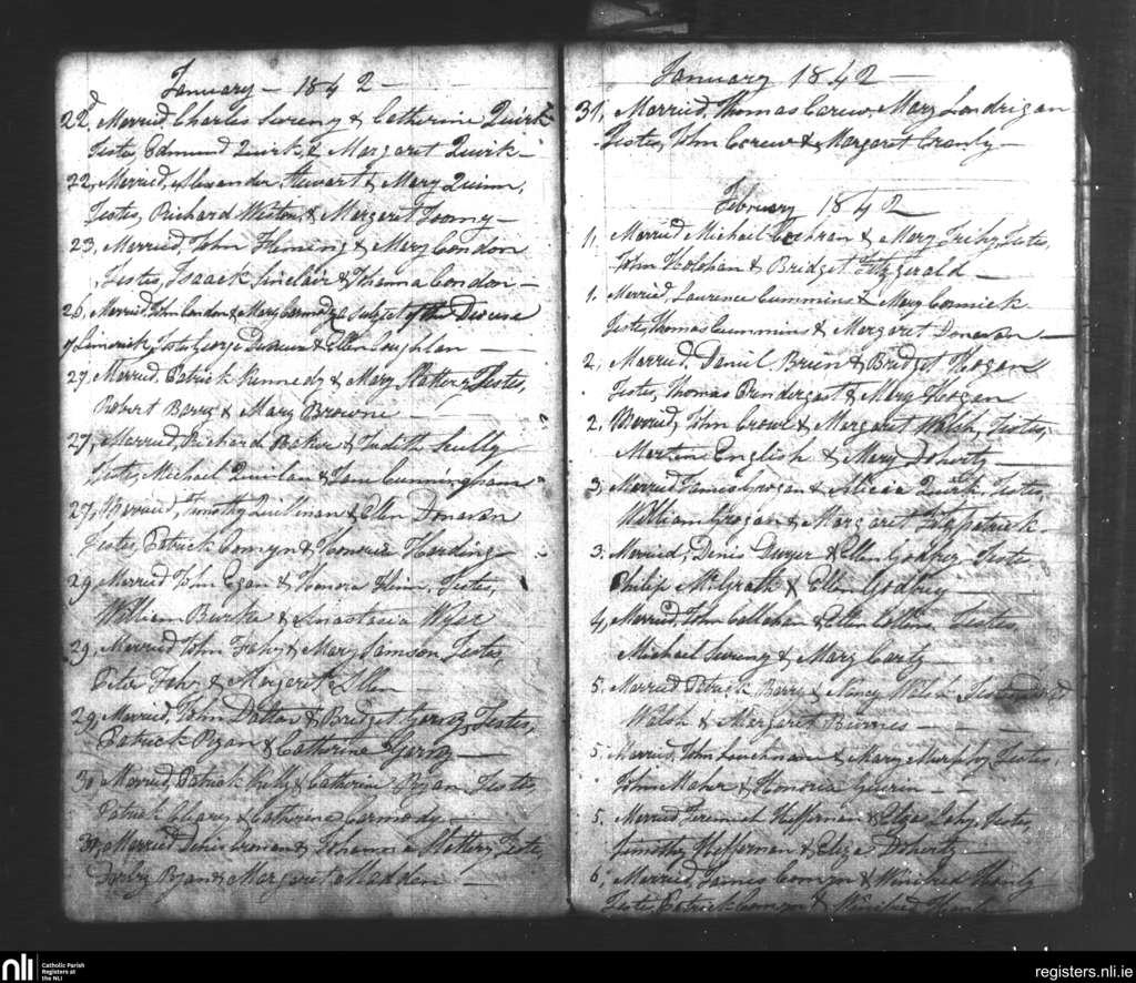 Tipperary; County of Tipperary; Diocese of Cashel and Emly. Marriages, Jan. 1842 to Feb. 1842