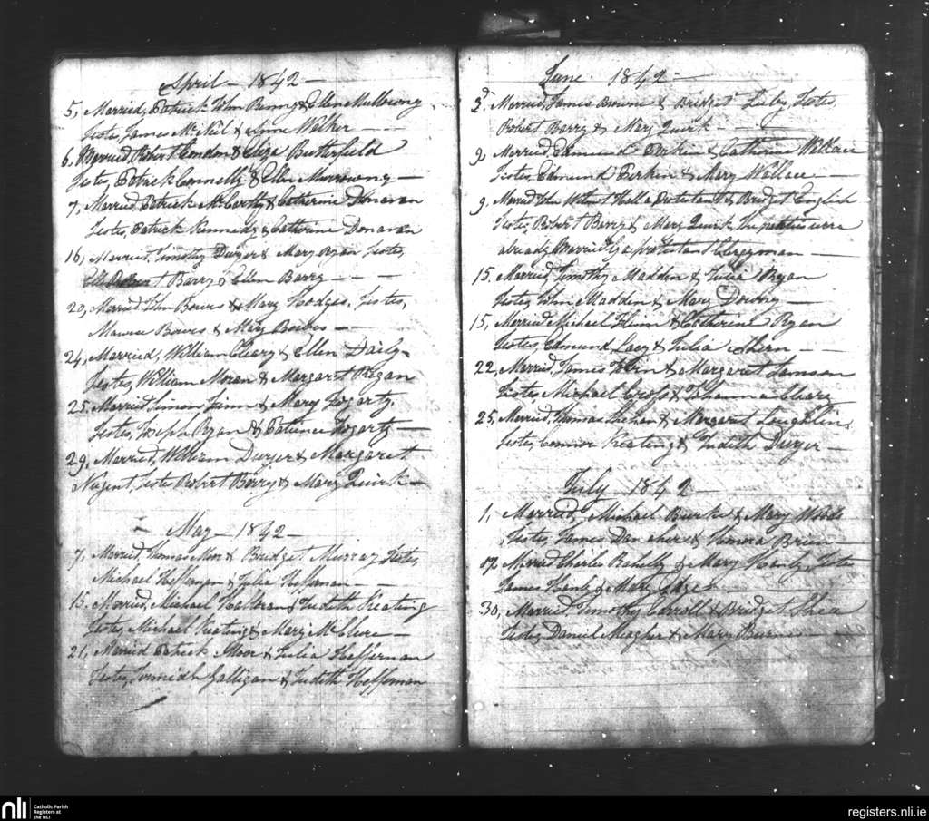 Tipperary; County of Tipperary; Diocese of Cashel and Emly. Marriages, Apr. 1842 to July 1842