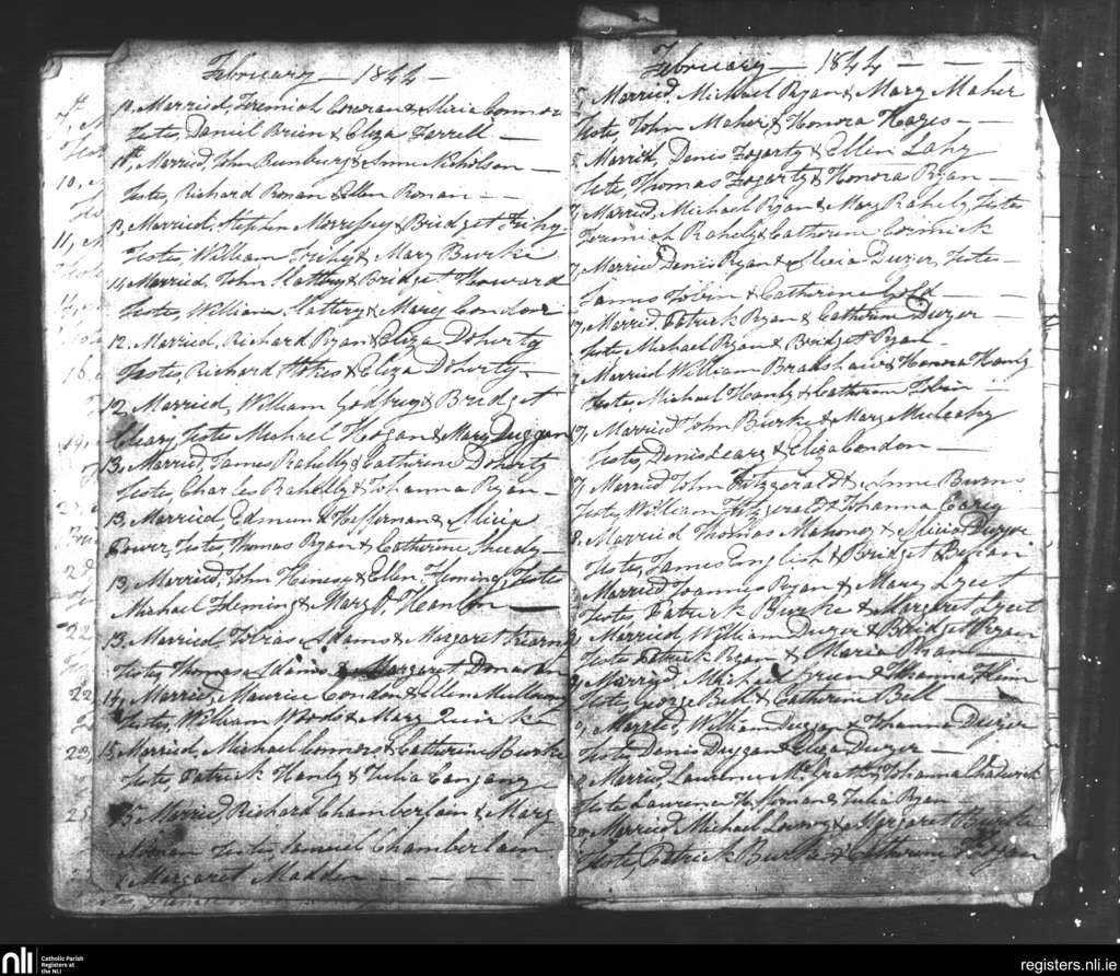 Tipperary; County of Tipperary; Diocese of Cashel and Emly. Marriages, Feb. 1844