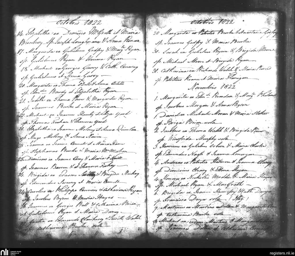 Tipperary; County of Tipperary; Diocese of Cashel and Emly. Baptisms, Oct. 1822 to Nov. 1822