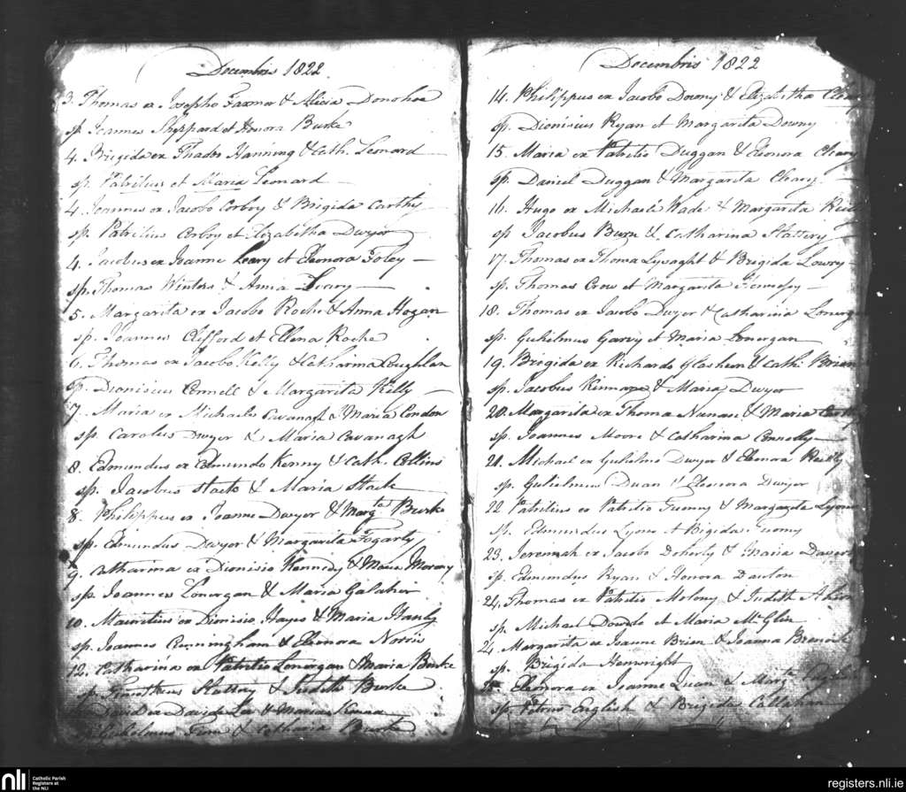 Tipperary; County of Tipperary; Diocese of Cashel and Emly. Baptisms, Dec. 1822