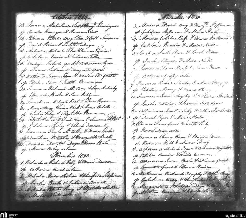 Tipperary; County of Tipperary; Diocese of Cashel and Emly. Baptisms, Oct. 1823 to Nov. 1823