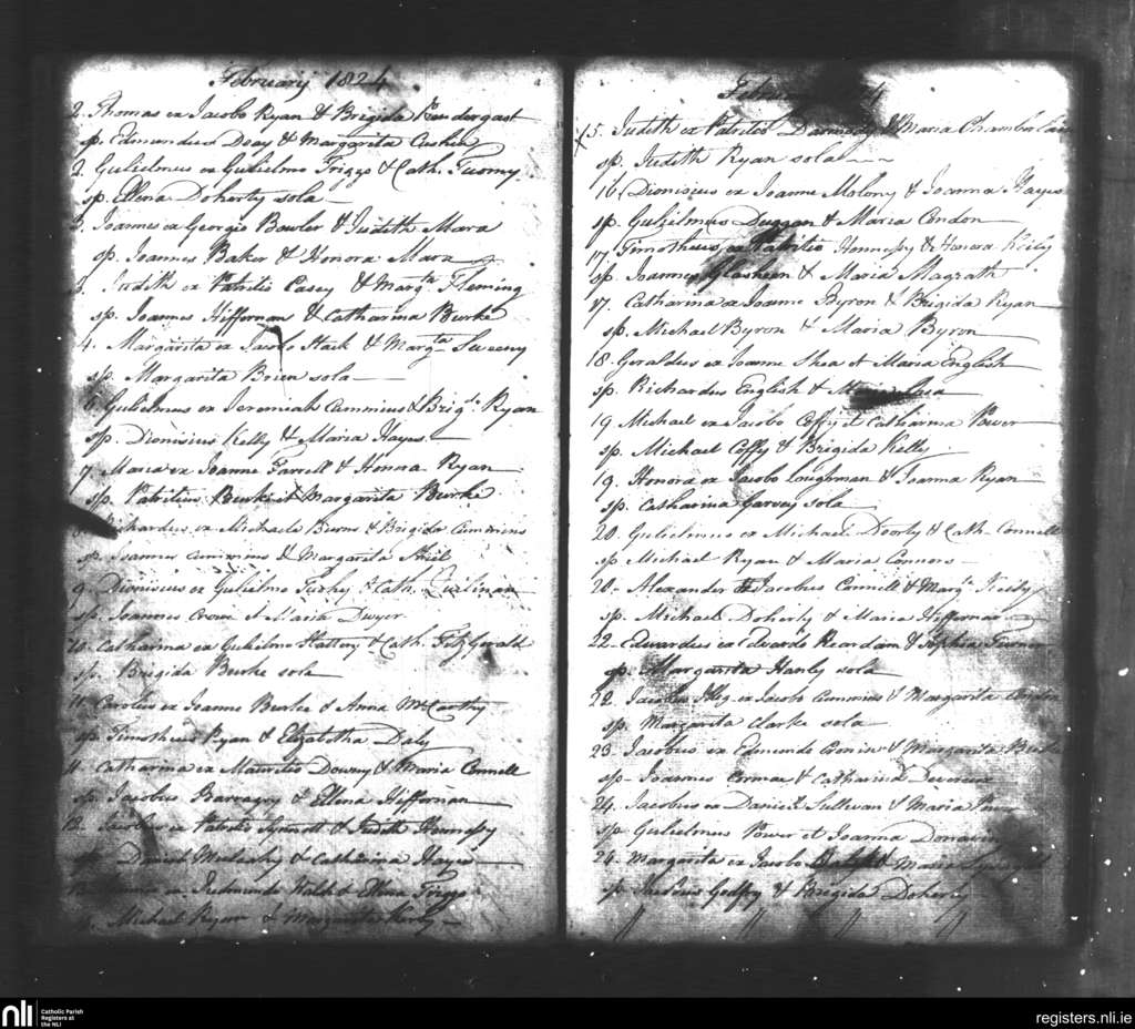 Tipperary; County of Tipperary; Diocese of Cashel and Emly. Baptisms, Feb. 1824