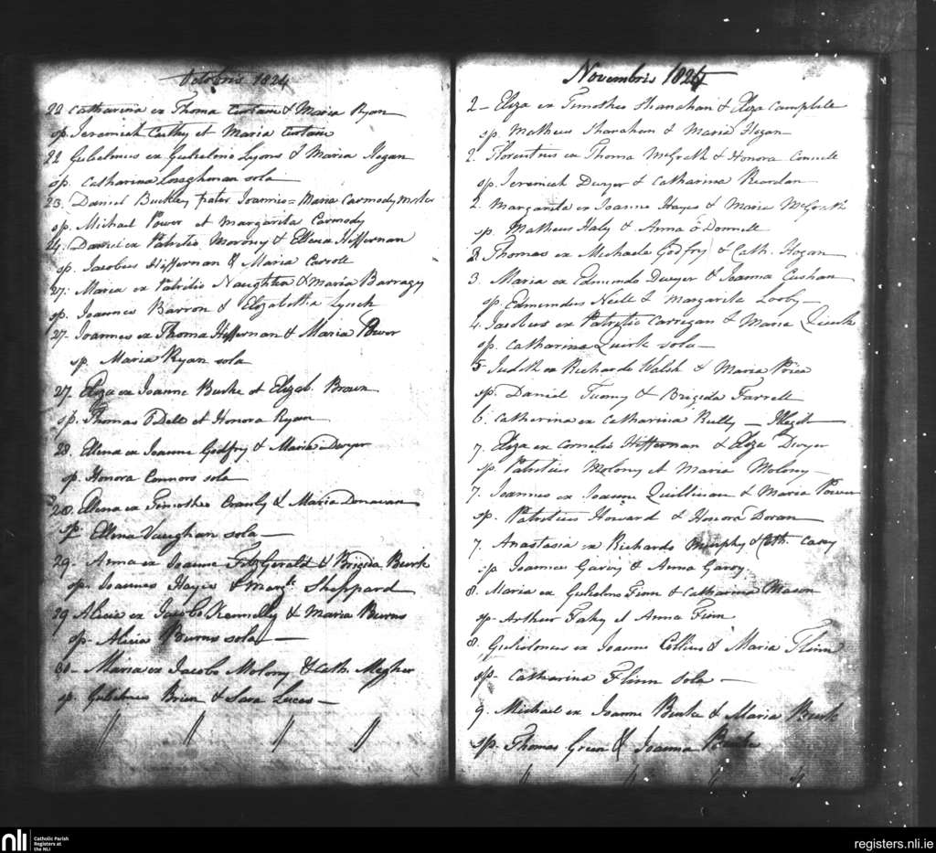 Tipperary; County of Tipperary; Diocese of Cashel and Emly. Baptisms, Oct. 1824 to Nov. 1824