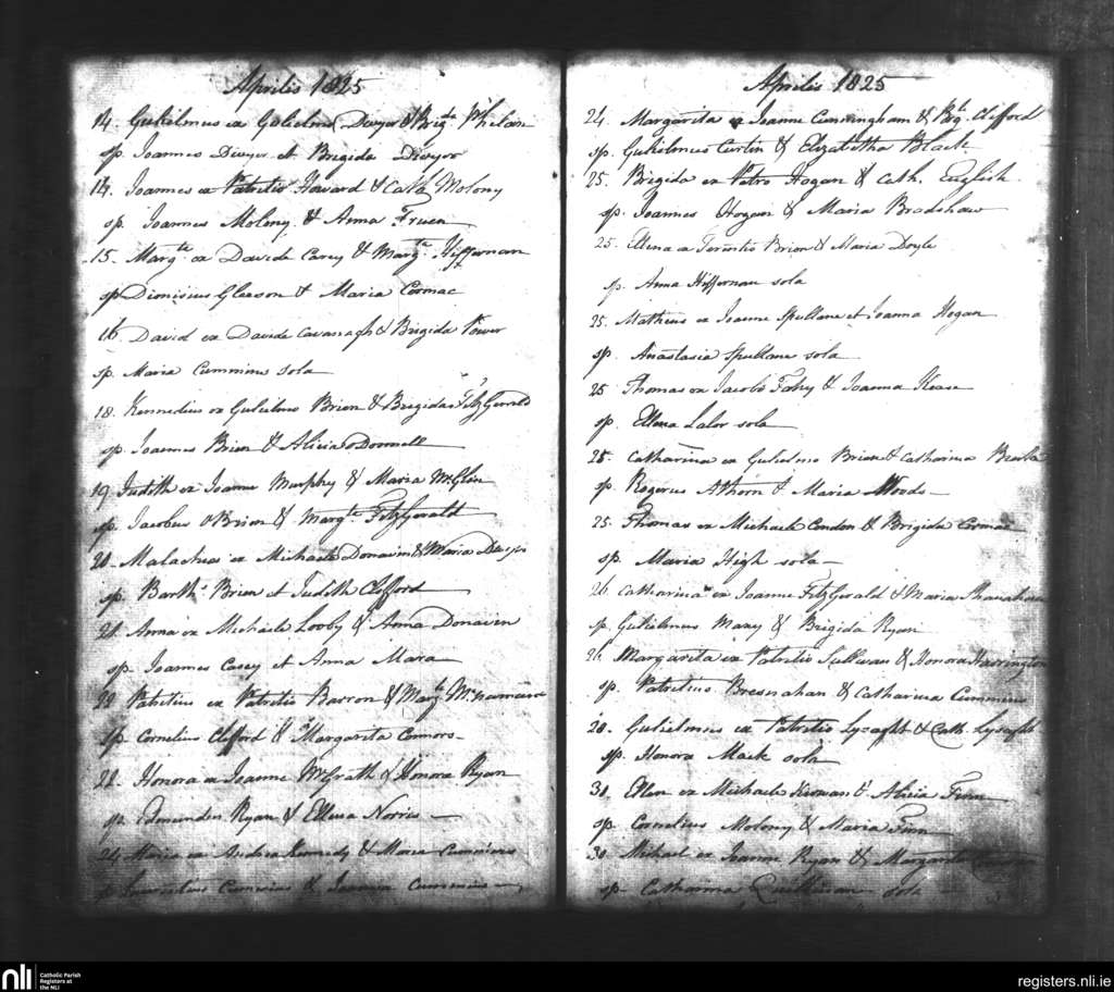 Tipperary; County of Tipperary; Diocese of Cashel and Emly. Baptisms, Apr. 1825