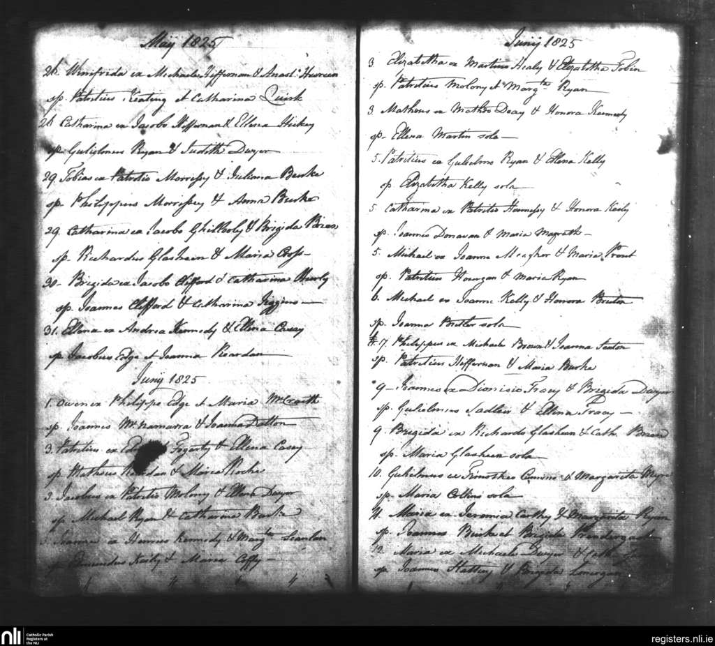Tipperary; County of Tipperary; Diocese of Cashel and Emly. Baptisms, May 1825 to June 1825