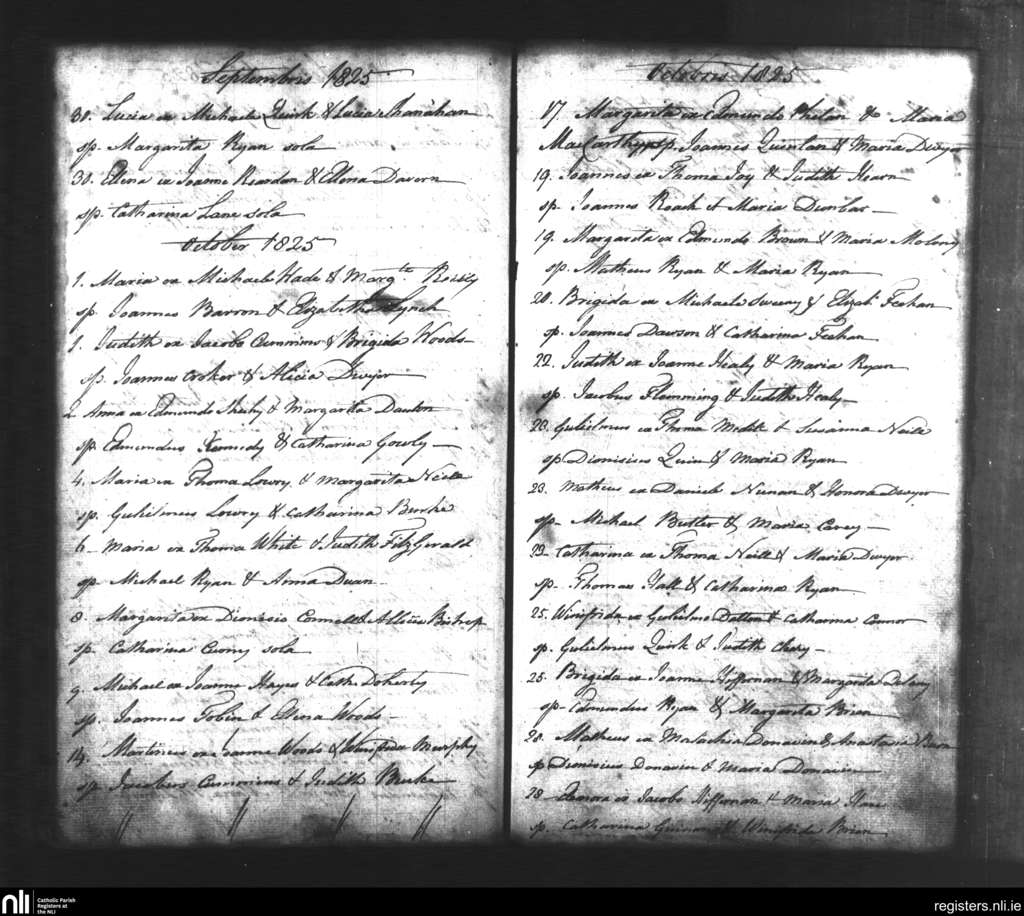 Tipperary; County of Tipperary; Diocese of Cashel and Emly. Baptisms, Sep. 1825 to Oct. 1825