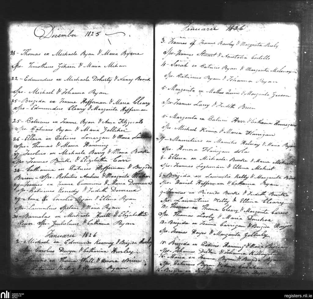 Tipperary; County of Tipperary; Diocese of Cashel and Emly. Baptisms, Dec. 1825 to Jan. 1826