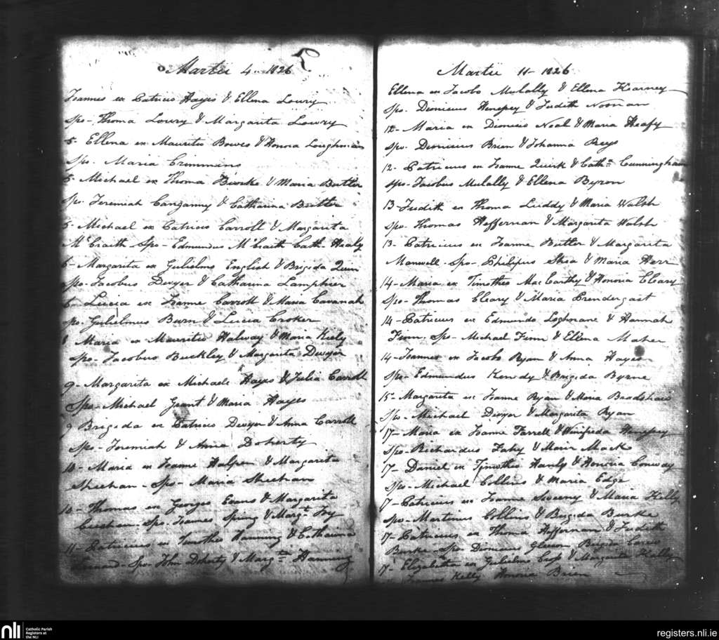 Tipperary; County of Tipperary; Diocese of Cashel and Emly. Baptisms, Mar. 1826