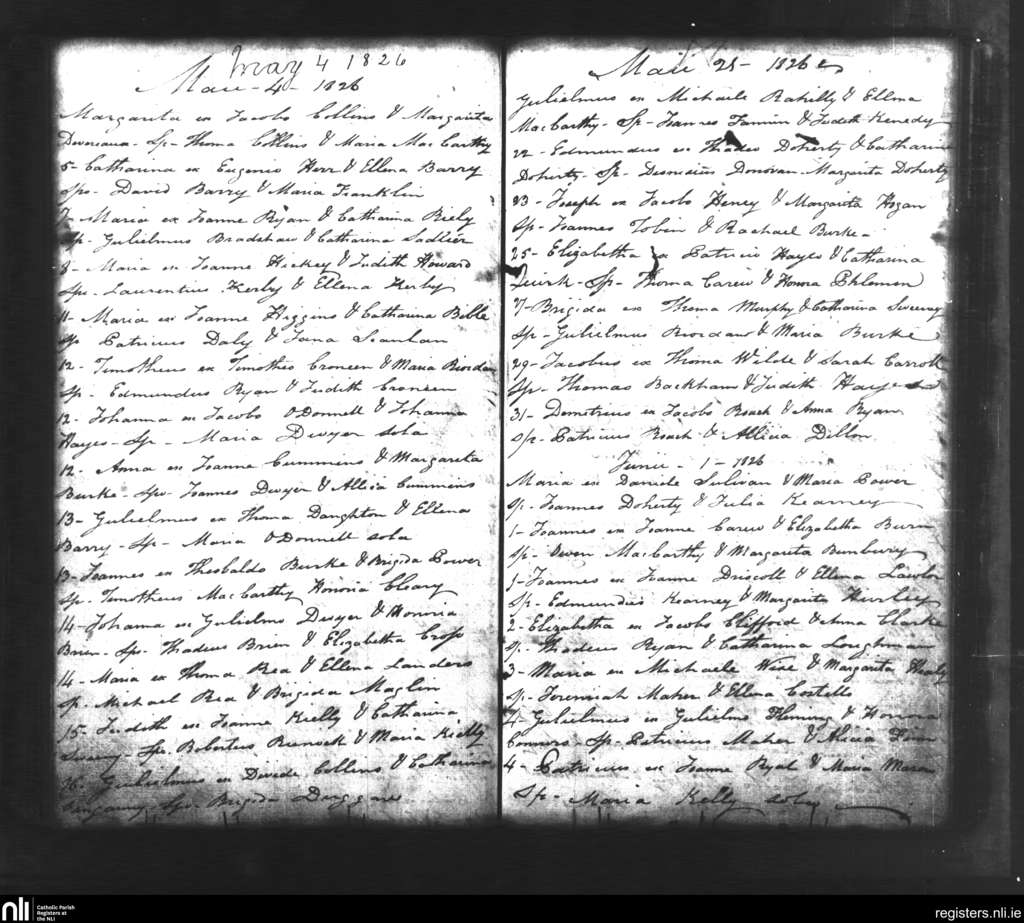 Tipperary; County of Tipperary; Diocese of Cashel and Emly. Baptisms, May 1826 to June 1826