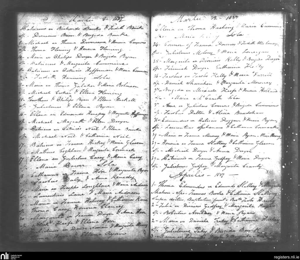 Tipperary; County of Tipperary; Diocese of Cashel and Emly. Baptisms, Mar. 1827 to Apr. 1827