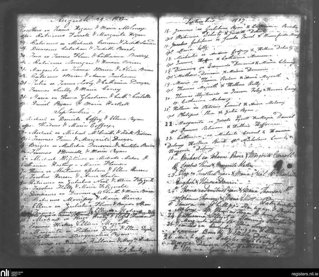 Tipperary; County of Tipperary; Diocese of Cashel and Emly. Baptisms, Aug. 1827 to Sep. 1827