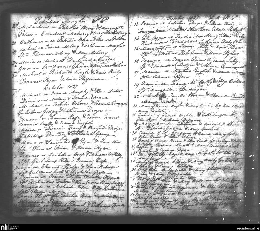 Tipperary; County of Tipperary; Diocese of Cashel and Emly. Baptisms, Sep. 1827 to Nov. 1827