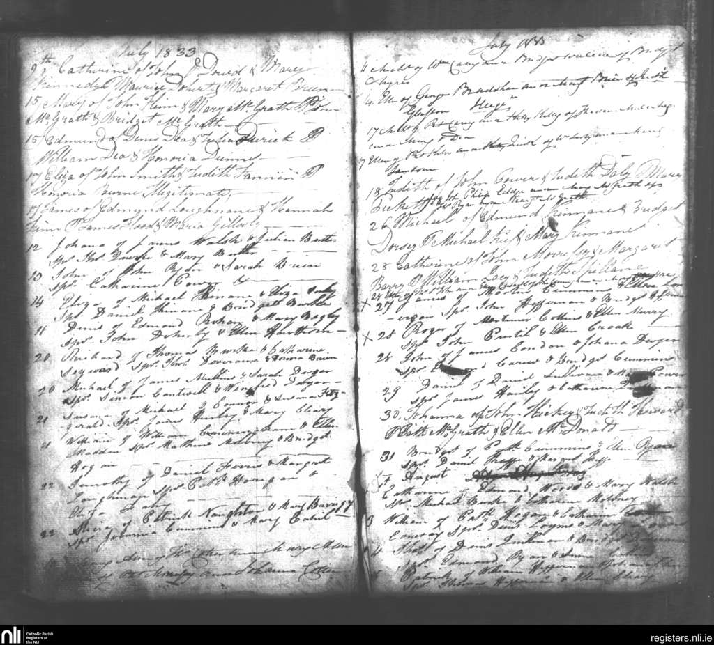 Tipperary; County of Tipperary; Diocese of Cashel and Emly. Baptisms, July 1833 to Aug. 1833
