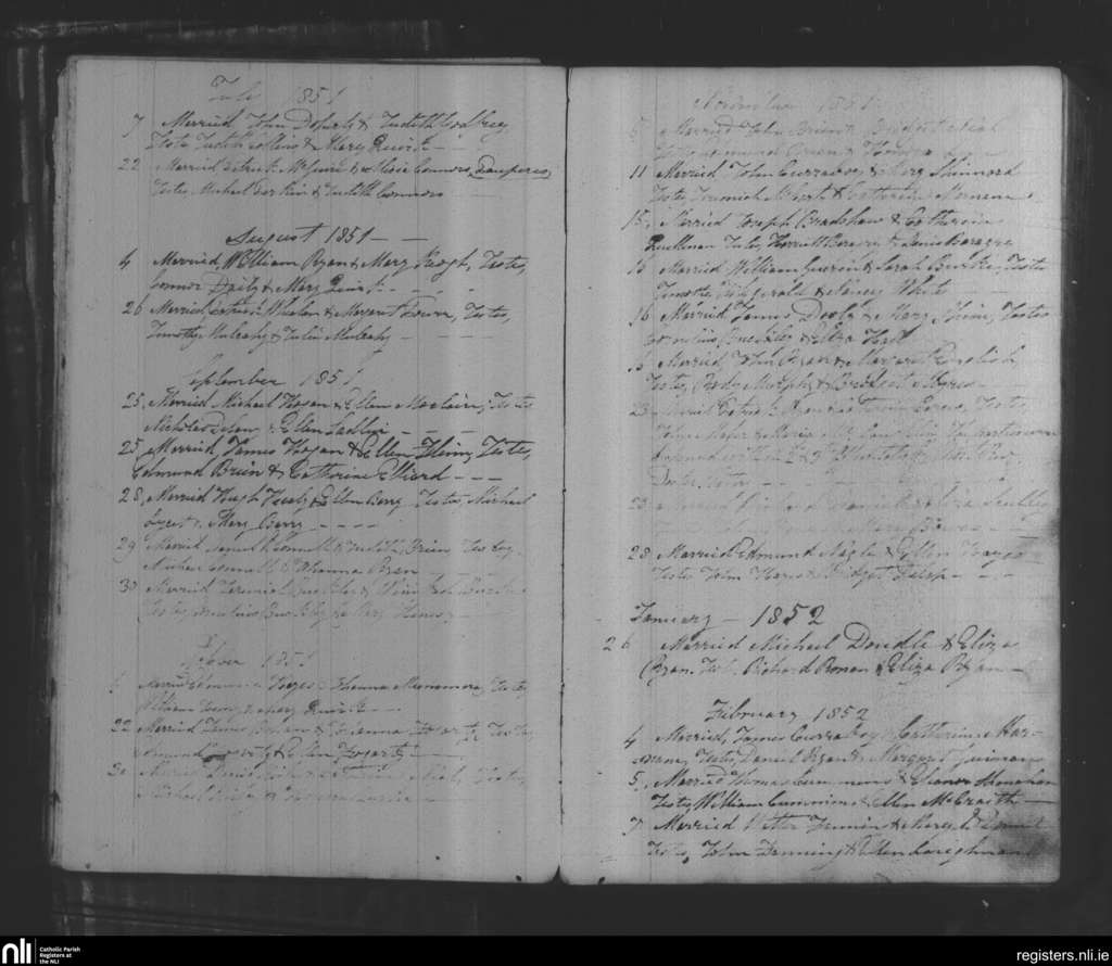 Tipperary; County of Tipperary; Diocese of Cashel and Emly. Marriages, July 1851 to Feb. 1852
