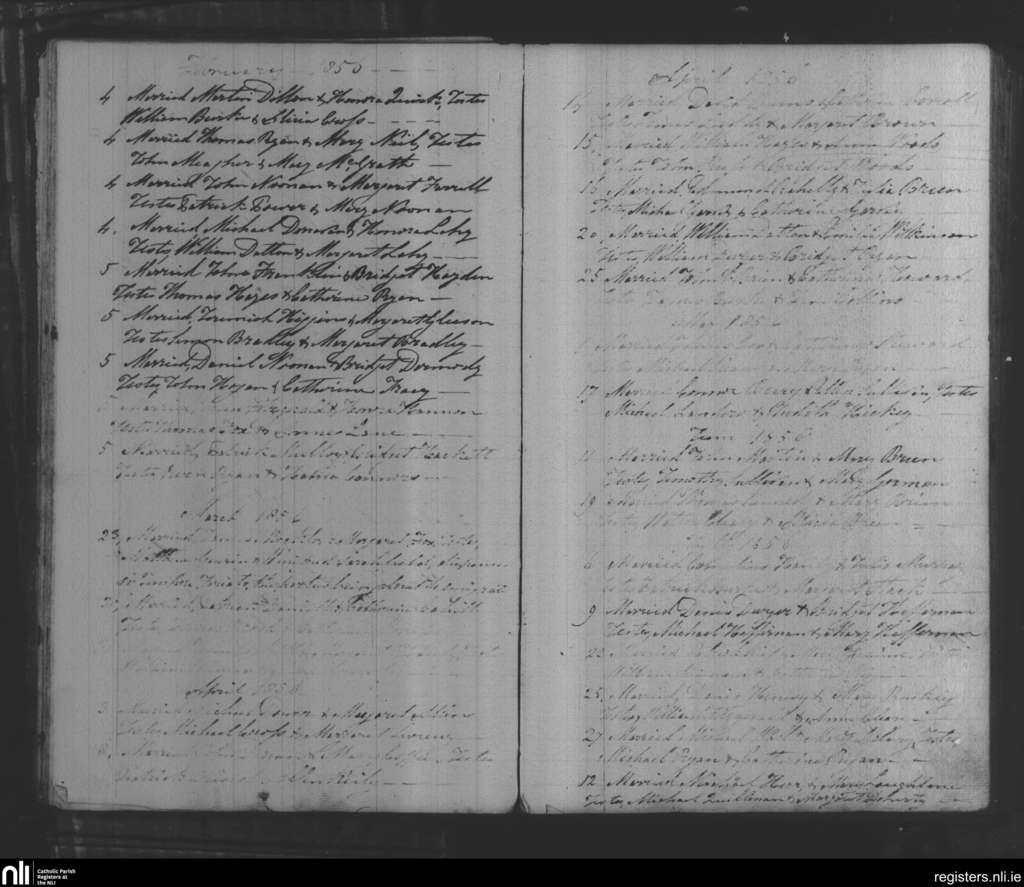 Tipperary; County of Tipperary; Diocese of Cashel and Emly. Marriages, Feb. 1856 to July 1856